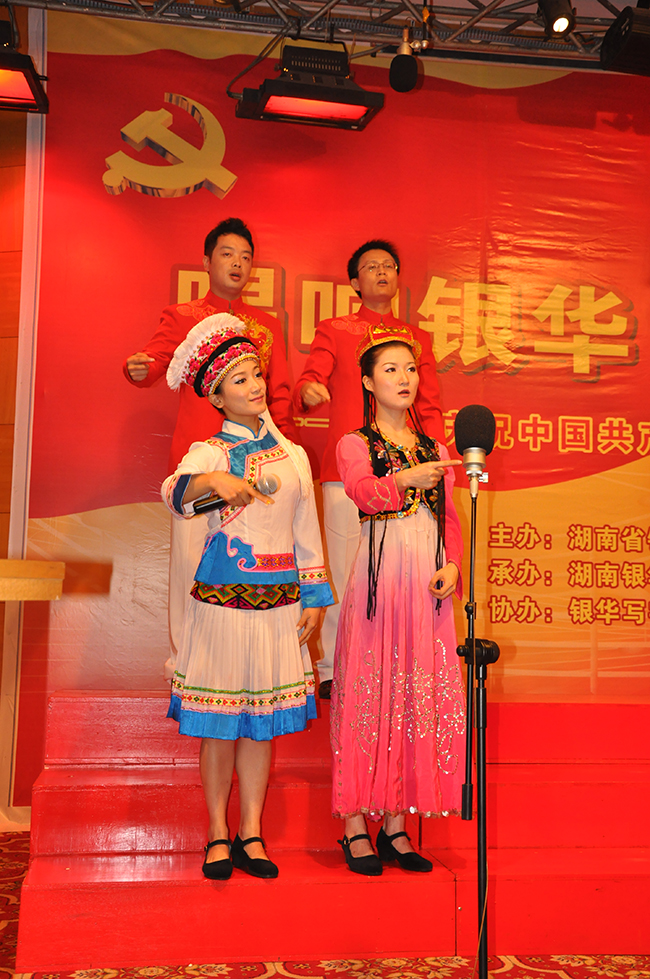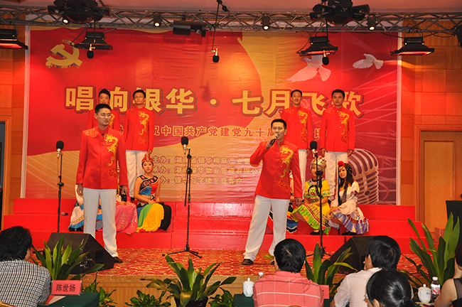 忆往昔峥嵘光阴,颂目前豪情豪放。为庆贺中国共产党建立90周年,宏扬和歌颂中国共产党获得的巨大成绩,我司参与了2011年7月20日由湖南省银华棉麻财产团体股分无穷公司党委主理,湖南省银华物业办理无穷公司党支部包办的“唱响银华、七月飞歌”独唱比赛。省社相干率领、总公司老同道代表作为佳宾受邀列席。
